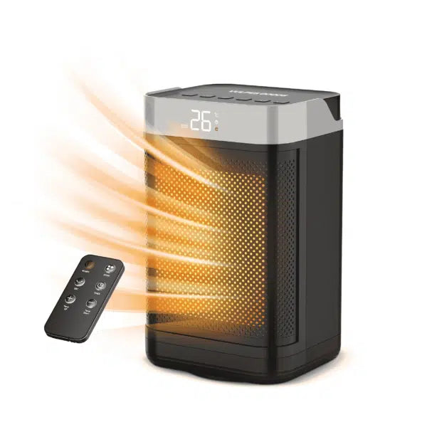 De slimme thermostaat maakt precieze temperatuurinstelling mogelijk tussen 15°C en 45°C, waardoor je alleen die ruimtes verwarmt die je gebruikt — een praktische manier om energiekosten te verlagen. Bedien de kachel eenvoudig via de knoppen op het toestel of met de meegeleverde afstandsbediening. De ingebouwde timer (1–12 uur) biedt extra gemak en voorkomt onnodig energieverbruik, bijvoorbeeld ’s nachts of wanneer je niet thuis bent. Door het compacte ontwerp neem je de kachel gemakkelijk mee van woonkamer naar kantoor of slaapkamer.