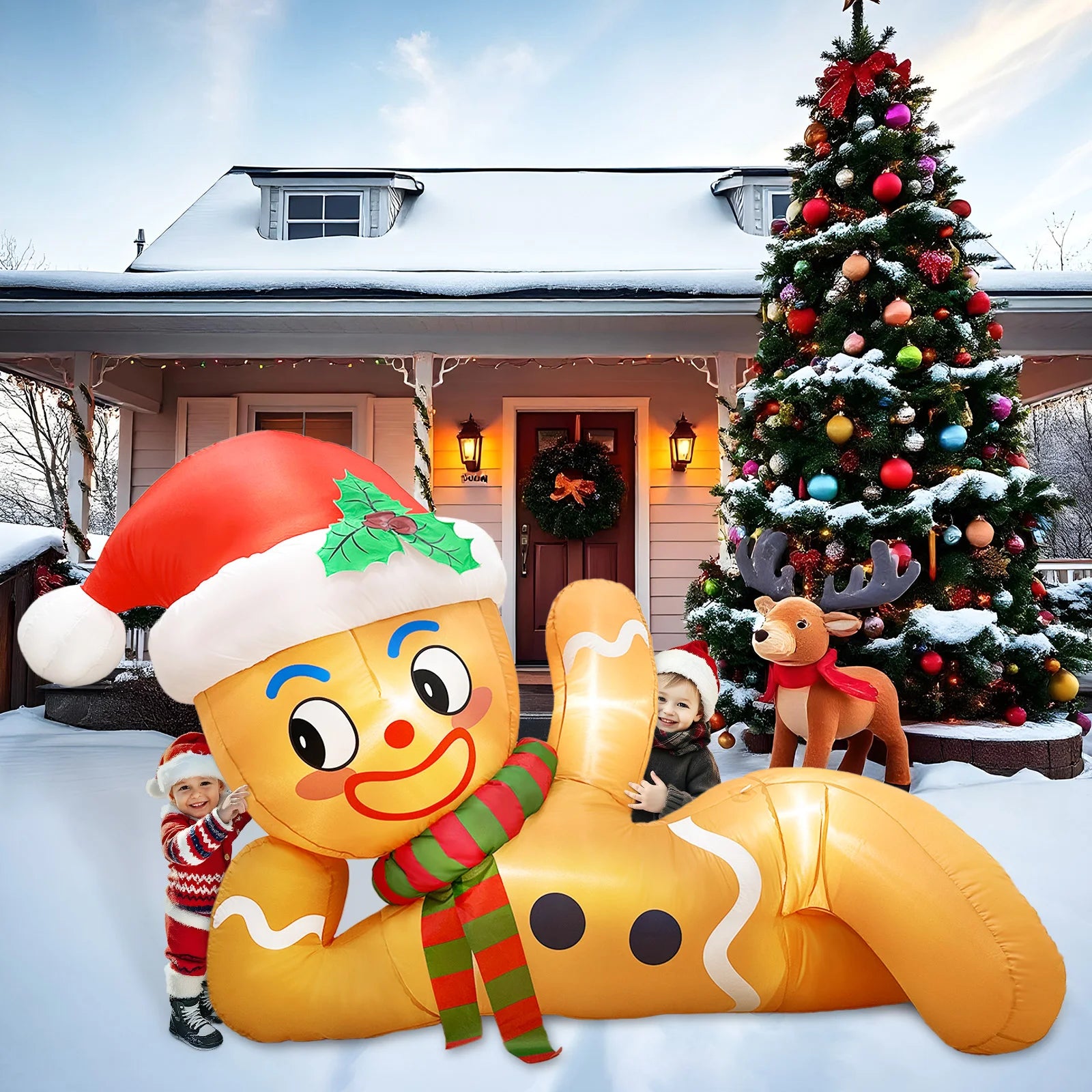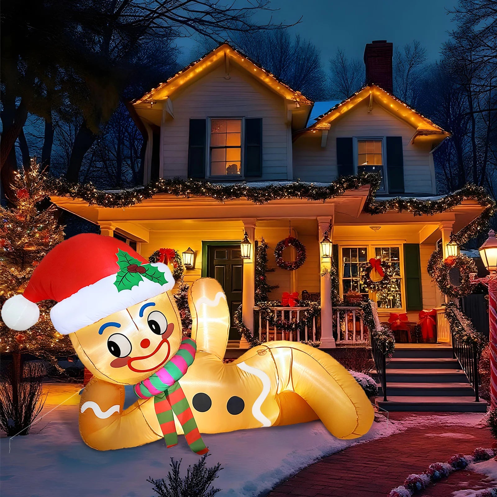 Vrolijk je tuin op met de PureAero™ 3 m Liggende Peperkoekman. Deze unieke opblaasbare kerstdecoratie toont een vrolijke peperkoekman die ontspannen ligt met een humoristische glimlach. Dankzij zijn indrukwekkende formaat en ingebouwde LED-verlichting trekt hij gegarandeerd de aandacht – zowel overdag als ’s avonds. Perfect voor tuinen, gazons of feestelijke winterevenementen.