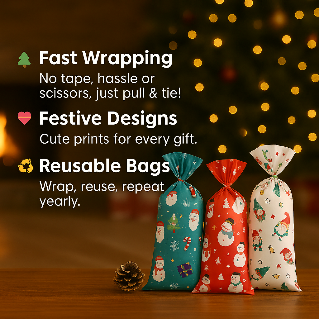 De PureAeroā„¢ Kerst Cadeauzakken Set – Santa & Snowman is een complete verpakking van feestelijke cadeauĀ­zakken, ideaal voor Kerstmis en winterĀ­bijeenkomsten. Deze set bevat een keus uit 25, 50 of 100 zakken met vrolijke patronen van de Kerstman en een sneeuwpop — perfect voor het inpakken van snoep, cadeautjes, traktaties of kerstversieringen.